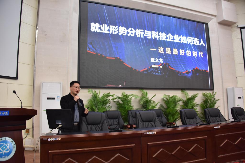 3月18日下午,测绘学院在图书馆五楼报告厅举行优秀校友进校园报告会,邀请到我校测量专业00级校友--上海华测股份有限公司副总经理兼人力资源总监魏立龙作报告。报告会由校党委宣传统战部部长杨建国主持,测绘学院辅导员及2018级全体学生聆听了报告会。