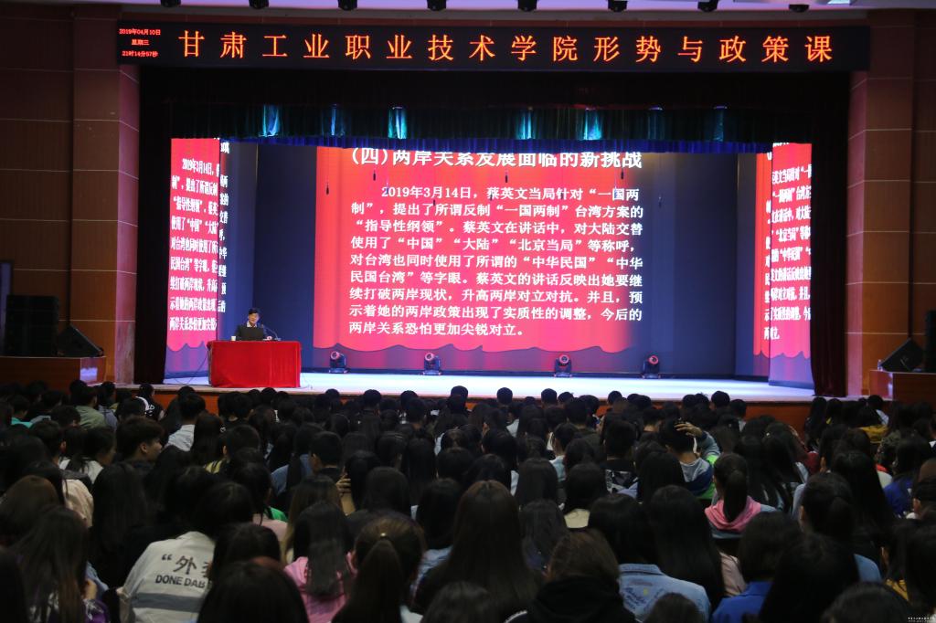 4月10日晚,我校党委副书记、纪委书记郭建忠在大学生活动中心为2018级学生作题为《祖国统一是新时代中华民族伟大复兴的必然要求》的形势与政策课专题讲座。