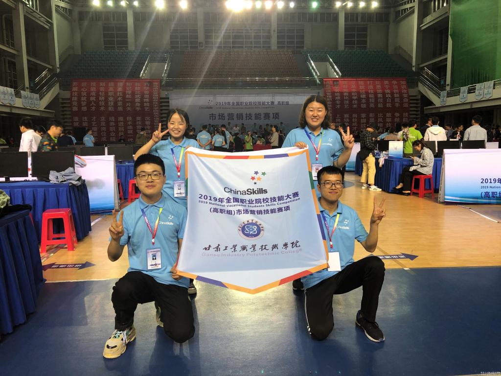 全国职业院校技能大赛“市场营销技能”赛项是财经商贸教育领域具有重要影响力的品牌赛事。为期两天的比赛包括商务数据分析、情境营销和营销实战展示三个竞赛模块。商务数据分析模块考察在网络销售实战平台上,搜集指定商品销售信息,并做出数据分析的能力;情境营销模块采用对抗沙盘模拟的方式,在竞争环境中实现企业效益最大化,不仅考察学生的目标市场选择与定位、竞争策略分析与执行、营销活动策划与组织、成本核算与财务分析的专业技能,还进一步考察学生对充分竞争市场的综合判断分析能力;营销实战展示模块针对线下实际完成的营销活动展开,学生在竞赛现场完成活动方案撰写、实施总结PPT制作和现场展示,考察营销过程中市场调查、营销策划、产品促销、线上线下推广等典型职业活动的方案设计、组织落实、过程管理等专业技能。随着比赛的深入,题目难度系数不断增大,对学生临场应变、沟通表达、礼仪规范、团队协作等能力有了更高的要求。由于赛程长,强度大,竞争激烈,随时都有可能出局,对选手的心理素质和耐力都极具挑战。自4名选手获得国赛资格后,经过赛前艰苦的训练和精心的准备,我院4位选手不畏强手,沉着应战,在从未有国赛经验的情况下,取得了突破性的好成绩。
