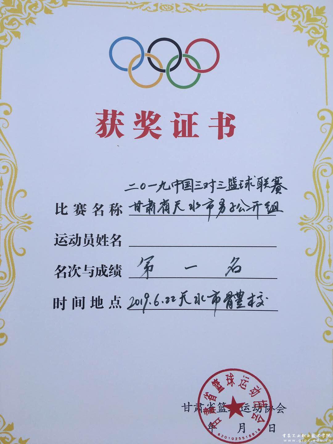 6月22日-23日,2019年中国三对三篮球联赛甘肃天水赛区比赛在天水市体育运动学校开赛,我校男子篮球代表队取得了男子公开组第一名的好成绩。