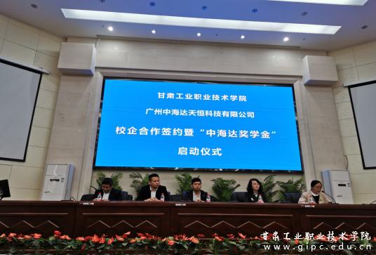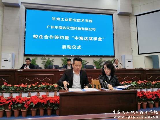 9月19日,甘肃工业职业技术学院与广州中海达天恒科技有限公司在图书馆五楼报告厅,举行校企合作签约揭牌暨中海达奖学金启动仪式,出席仪式的有:广州中海达天恒科技有限公司西北销售总监田春龙,兰州祥龙宾得仪器仪表有限公司销售经理王海旺,甘肃工业职业技术学院教务处处长何瑛、测绘学院副院长杨爱琴、韩立钦。签约仪式由杨爱琴主持。