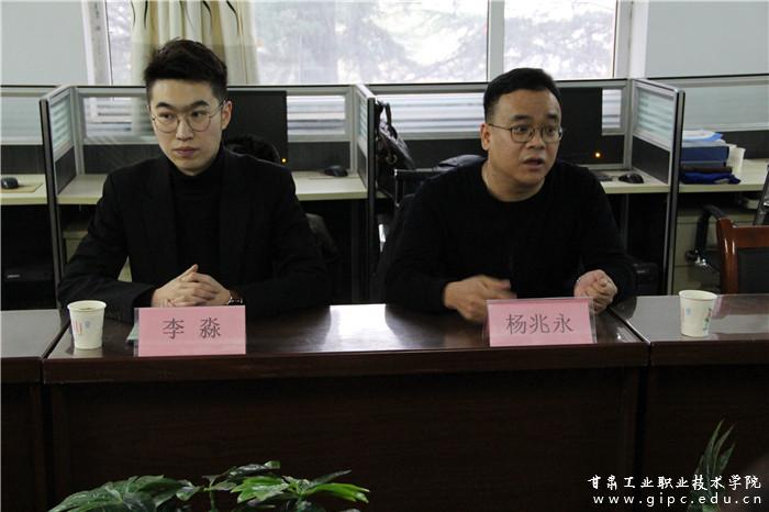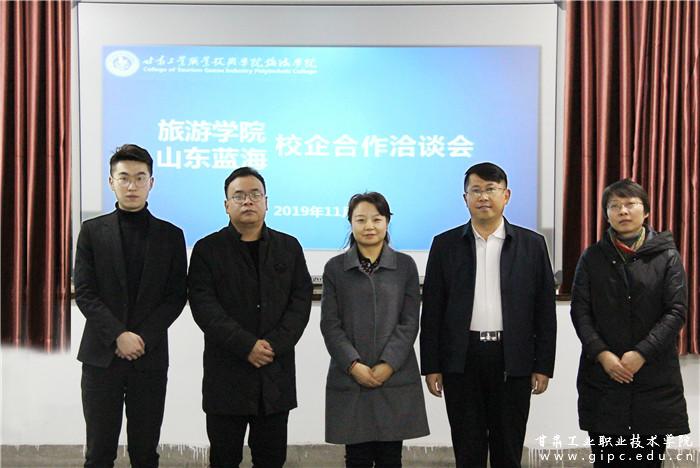 天水宾馆副总经理宋勤、天水宾馆行政办公室主任彭勃,山东蓝海集团人力资源经理杨兆永、山东蓝海集团人力资源部招聘经理李淼分别针对项目企业资质、项目协议内容、项目实施情况和项目监管情况与我院深入交换了意见。最终,与天水宾馆就学生实习实训、宾馆员工服务管理能力提升达成了初步意见,与山东蓝海集团深度合作及教育扶贫达成了一致意见。旅游学院党支部书记、院长曹瑞琴,旅游学院纪律检查委员、副院长李玉林,办公室主任刘晓丽、酒店管理专业主任王作娟参加洽谈。
