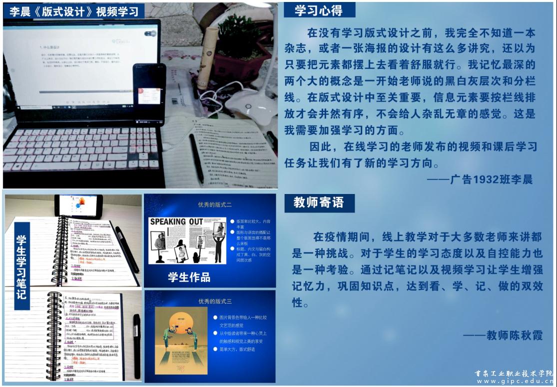 在这场没有硝烟的 “战疫”中,我们都是参与者和见证者。疫情当前,甘工院师生用自己力所能及的方式,为抗击疫情贡献力量。老师们利用在线教学资源,认认真真上好每一节课,切实做到停课不停学。广大学子克服种种困难,积极配合老师的线上教学,认真观看课程直播,一起学习,共同进步。