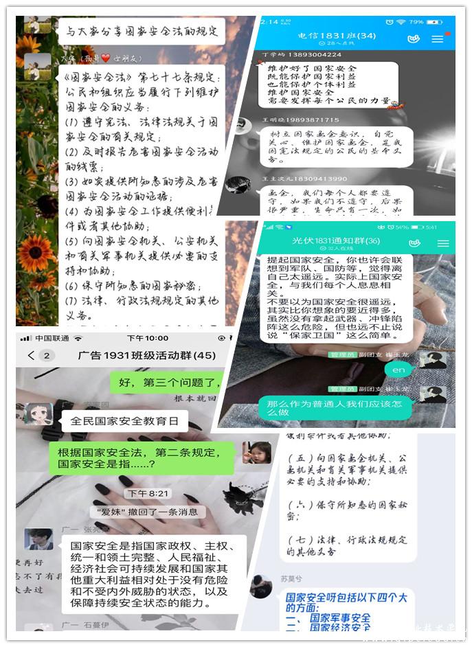 4月15日,校团委组织学校学生开展线上主题学习教育活动。今年活动主题为“坚持总体国家安全观,统筹传统安全和非传统安全,为决胜全面建成小康社会提供坚强保障”。