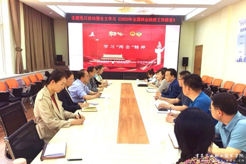 为深入学习全国两会政府工作报告,贯彻“两会”精神,经管学院党支部于2020年5月27日下午在党员活动室开展主题党日活动——学习《2020年全国两会政府工作报告》。