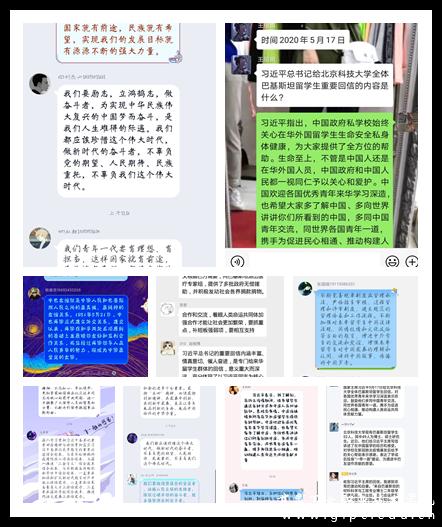 学习活动通过线上、线下两种方式展开。在全球抗击新冠肺炎疫情的重要时刻,习近平总书记给北京科技大学全体巴基斯坦留学生的回信使我校学生备受鼓舞。我校学子纷纷表示:作为新时代青年学生,要练就过硬本领,努力掌握科学文化知识和专业技能,在学习中增长知识、锤炼品格,在工作中增长才干、练就本领,以真才实学服务人民,积极配合学校做好疫情防控工作,继续发扬“党有号召、团有行动”的优良传统,让青春在为祖国、为人民、为民族、为人类的奉献中焕发出更加绚丽的光彩!