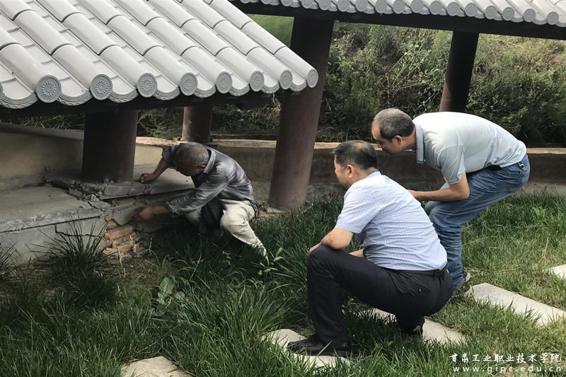 在此次排查过程中,共发现存在3个安全隐患重点问题。一是地质园地质长廊廊檐后部因雨水排水不合理造成支撑挡土墙局部开裂,安全隐患极大;二是锅炉房后院挡土坪排水明渠易积水,锅炉房存在安全隐患;三是2号住宅楼,1号、2号教学楼、图书馆及大学生活动中心檐沟和排水口处落叶堆积排水不利,易形成安全隐患。