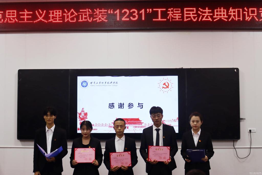 此次活动旨在进一步利用知识竞赛活动形式展示《民法典》学习宣传情况,进一步在校掀起《民法典》学习宣传的热潮,充分发挥“1231”学员示范带动作用,通过知识竞赛、开展情景式教育,培养青少年的法治意识、规则意识、诚信意识。同时教育引导学生认识到《民法典》即是保护自身权益的法典,也是能养成同学们自觉守法意识的法典。