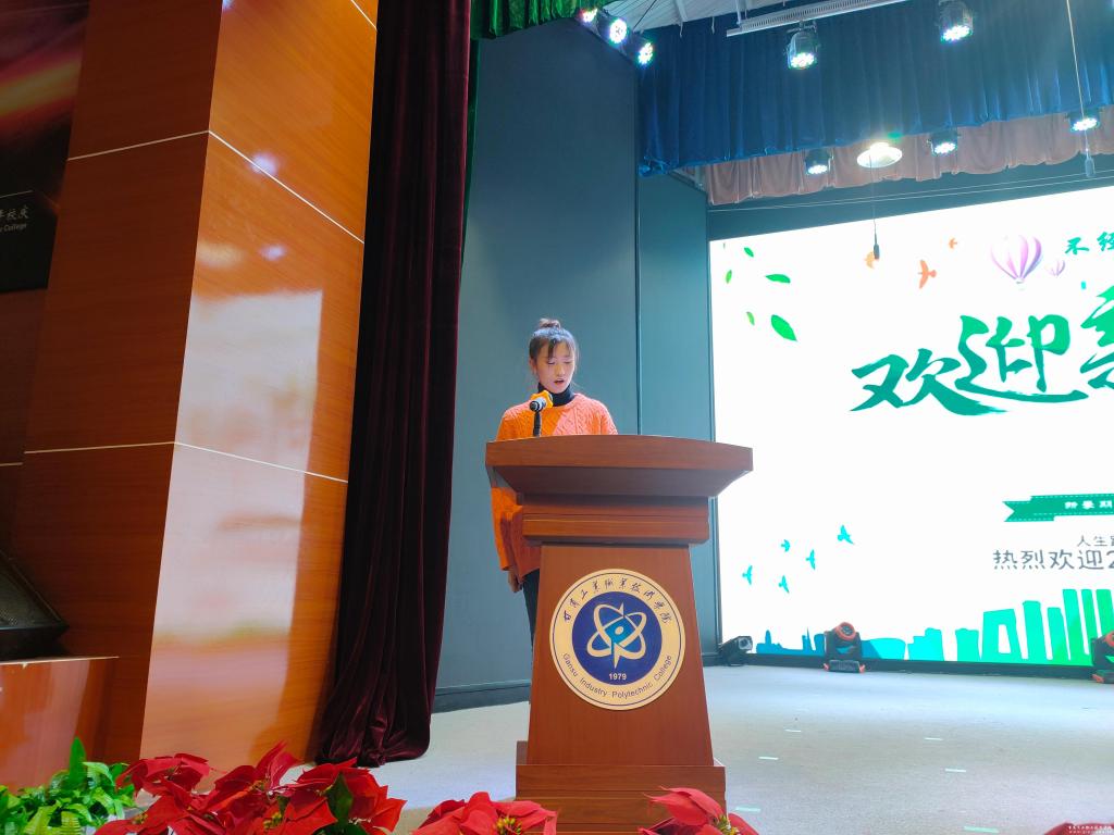 电信学院应用电子技术2032班尚碧霞同学,作为2020级新生代表发言。她分享了进入新人生新阶段的喜悦心情,传达了电信学子使命在肩、砥砺前行的担当和作为,她表示,将明确目标,拼搏奋斗,扩大格局,激发潜能,静下心来学习,朝着自己的梦想,无畏前行,在甘肃工业职业技术学院绽放属于自己的青春光彩。