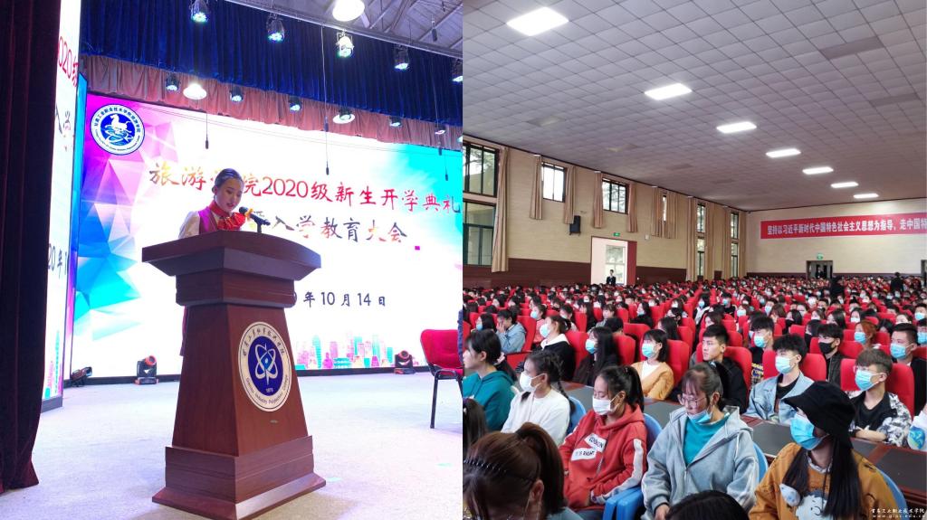下午4点,旅游学院在大学生活动中心举行了新生开学典礼暨入学教育大会,旅游学院负责人、各专业主任、学生辅导员、班主任以及全院880余名新生参加了大会。