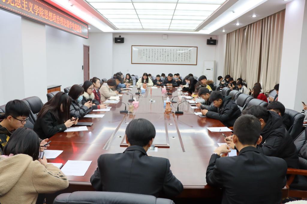 为进一步推进落实思想政治理论课改革方案,切实提高思想政治理论课教学的实效性、针对性,12月16日下午,马克思主义学院在图书馆四楼会议室召开了思想政治理论课学生座谈会,邀请学校2020级不同专业共计50余位同学座谈。马克思主义学院相关负责人和思修教研室负责人参加,座谈会由副院长李杨主持。