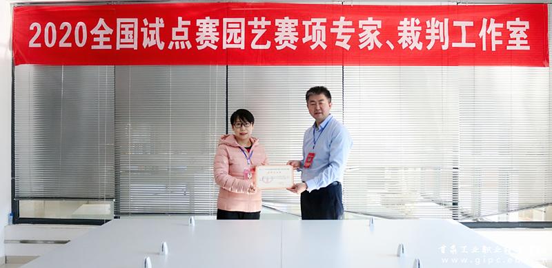 园艺赛项裁判长李夺为颉蓉老师颁发裁判员证书