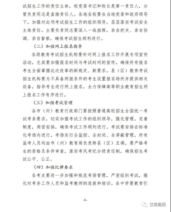 关于做好2020年甘肃省高等职业教育考试招生工作的通知